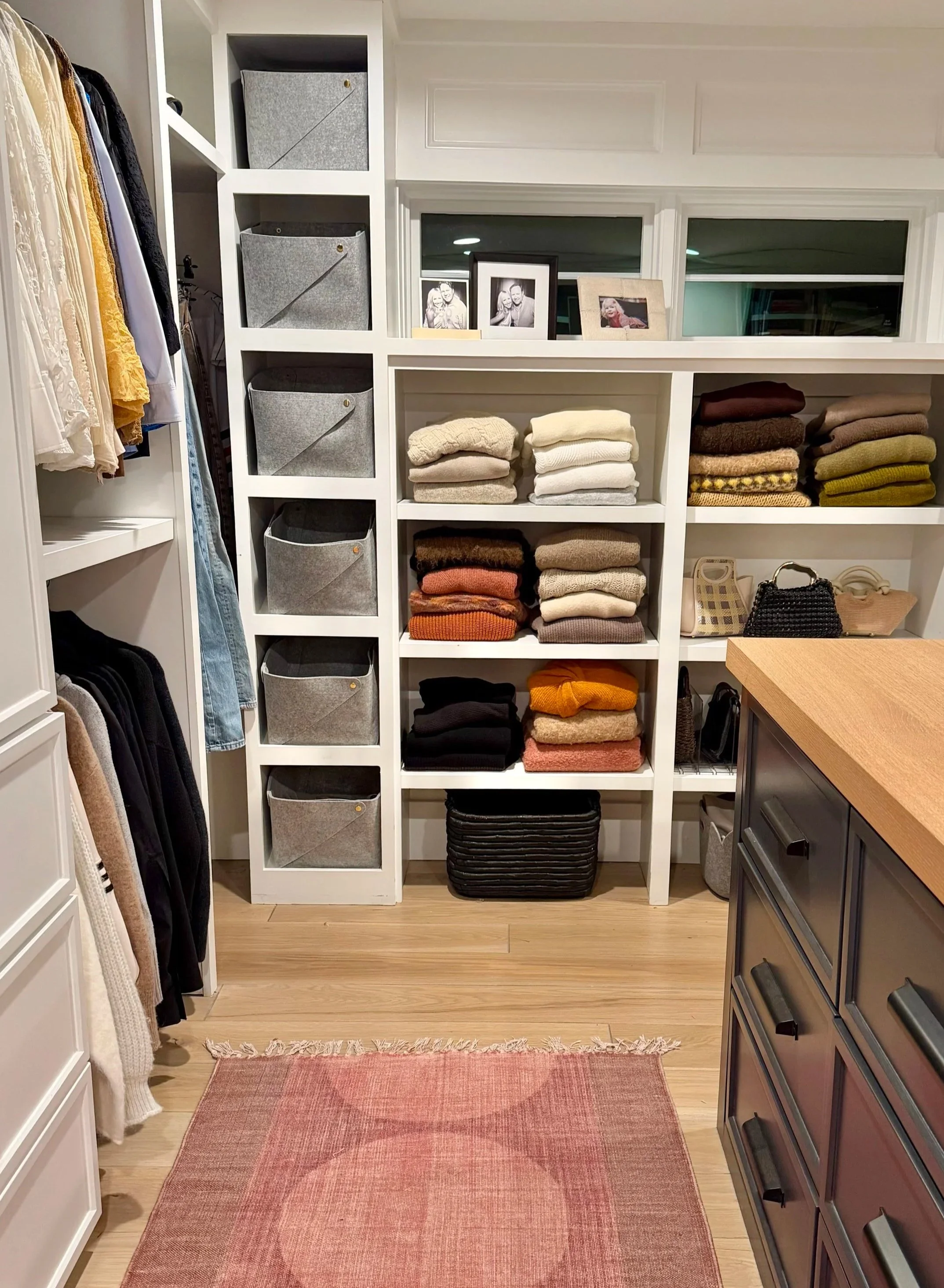 Closets are deeply personal spaces, and we offer gentle, judgment-free guidance as we edit your clothing together, only keeping the clothing that best reflects who you are today. We'll talk about your personal style, your routines, and any challenges you're facing in your current closet setup.